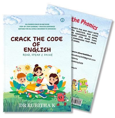 Crack the Code of English is a Phonics Learning Book & Guide created to make English learning fun, easy, and effective for children. With colorful illustrations and simple explanations, the book brings together all phonics rules in one place. Each concept is explained step by step with examples, practice sentences, and activities to help children gain confidence in reading, pronunciation, and speaking English fluently.
